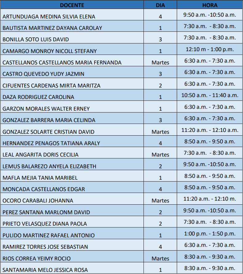 Horario de atención docente